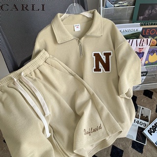 Set áo polo tay ngắn và quần ngắn dáng rộng thời trang Hàn Quốc cho nam
