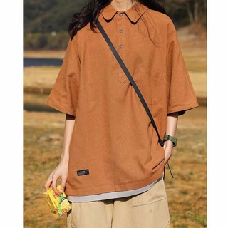 Áo polo Tay Ngắn Dáng Rộng Màu Trơn Có Túi Thời Trang Mùa Hè Cho Nam