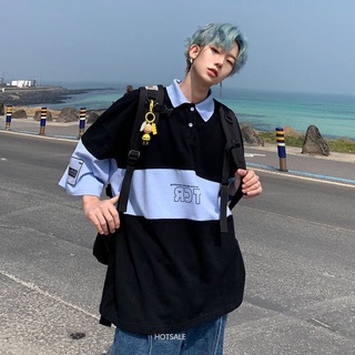 Áo polo Tay Ngắn Dáng Rộng Màu Sắc Tương Phản Phong Cách Đường Phố Thời Trang Cho Nam