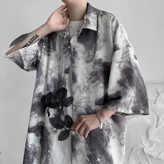 Áo Sơ Mi Tay Lửng In Họa Tiết Cá Tính Theo Phong Cách Mùa Hè Dành Cho Nam