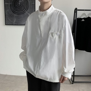 Áo Khoác Sơ Mi Cổ Đứng Tay Dài Dáng Rộng Màu Trơn Thời Trang Mùa Xuân Cho Nam Giới