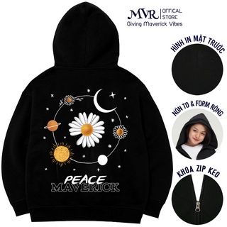 Áo khoác hoodie dây khóa kéo unisex nam nữ peace hoa cúc hồng form rộng Cotton 100% Da Cá Cao Cấp Chân Cua MVR KK010814