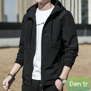 Áo Gió Nam màu đen trơn có mũ chất liệu dù 2 lớp cao cấp chuẩn dáng from như hình mẫu đơn giản chuẩn size MS AKD ĐEN TR