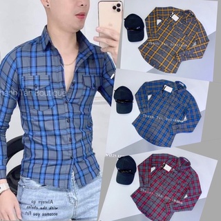 Áo sơ mi bbr nam dài tay phối viền thun kẻ sọc , caro nhiều màu chất liệu cotton thấm hút mồ hôi cực kỳ tốt