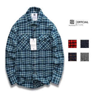 Áo sơ mi nam flannel PUNDO họa tiết kẻ sọc chất cotton dạ cao cấp ASMPD17