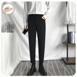 Quần âu nam hàn quốc dáng baggy suông đen vải dày dặn co giãn tốt Ailee QNAM 8002A1