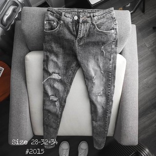 [FREESHIP] Quần Jean Nam Cao Cấp Co Dãn ms2015 Xám Trắng Rách Nhẹ Hàn Quốc_fashionneww
