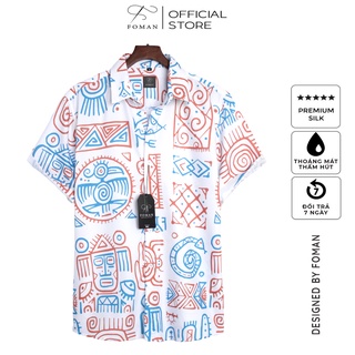 Áo sơ mi nam tay ngắn FOMAN chất vải lụa cao cấp, thoáng mát, thoáng khí hoạ tiết thổ cẩm TRIBAL GEOMETRY (FM20)
