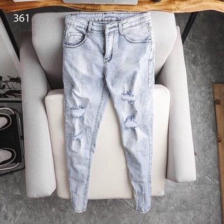 Quần jean nam dài, quần bò nam màu xanh nhạt rách cá tính chất co dãn thoải mái hàng y hình