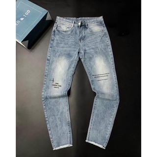 Quần jean nam quần bò thêu chữ phối rách kiểu thời trang chất jean bò co dãn thoải mái hàng chuẩn như hình ms4056