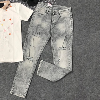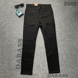 Quần jean nam dài, quần bò nam Dabass màu xám nhạt phối rách chất co dãn thoải mái hàng y hình