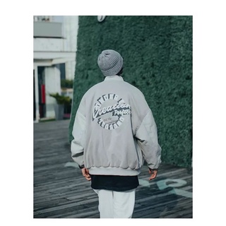 ÁO KHOÁC BOMBER PHỐI TAY DA NAM NỮ T-A-N FORM RỘNG VAI SỆ-AKD7-Vải Dạ phối Tay Da cực ngầu hình thêu màu xám