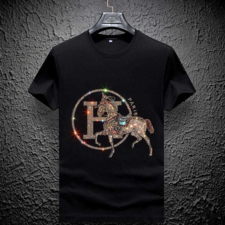 Áo thun tay ngắn cổ tròn 2022 in hình con ngựa sử dụng công nghiệp nặng