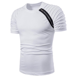 Áo thun Nam Áo phông Nam phối Xếp li Tay Vai khóa Ngực cách điệu.Phong cách ôm body lịch lãm H44 .