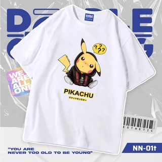 Áo thun nam nữ tay lỡ unisex oversize áo phông form rộng basic tee hình pikachu bận áo khoác