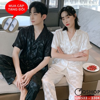 Bộ đồ pijama cặp đôi nam nữ lụa gấm quần dài tay ngắn QSHOP QM523