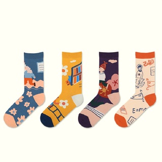 Vớ WAFNHA D566 dài vừa in họa tiết tranh sơn dầu hoạt hình