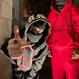 Áo Khoác Hoodie Nỉ Dáng Rộng Có Khóa Kéo Họa Tiết Đầu Lâu Đính Đá Phong Cách Gothic Thời Trang Unisex 2023 Y2k