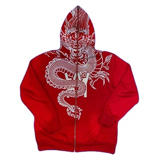 Áo khoác hoodie MMIOT Y2K tay dài phối khóa zip đính đá in họa tiết rồng phong cách hip hop thể thao