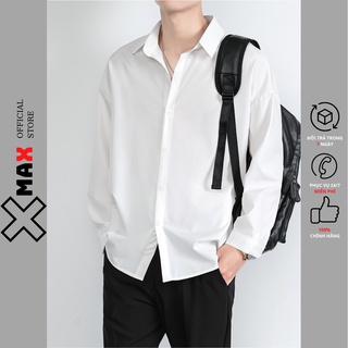 Áo sơ mi nam nữ dài tay unisex công sở form rộng basic trơn kiểu Hàn Quốc vải lụa mềm mại MAXSTORE B027