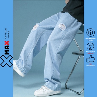 Quần jean nam baggy rách gối ống rộng dáng suông đẹp chất liệu vải bò cao cấp trơn hottrend XMAX B003