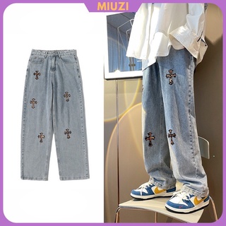 (SẴN)Quần jean nam ống rộng thêu thánh giá, quần bò nam thêu họa tiết cực chất,quần jean nam Miuzi dáng unisex DT181