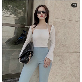 áo kiểu mix yếm trong áo tay dài ngoài lạ đẹp ảnh thật chất thun mềm na