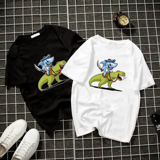 Áo phông nam nữ form rộng tay lỡ cá mập cưỡi khủng long vải dày mịn 2021T3268