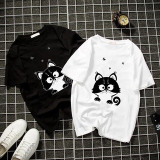 Áo thun unisex mèo dễ thương màu trắng 2019T880