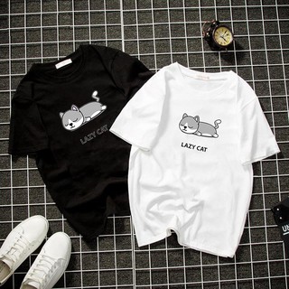 Áo thun unisex form rộng in lazy cat vải dày mịn 2019T1151