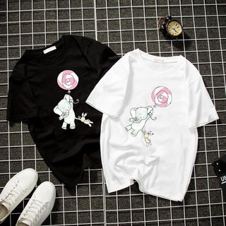 Áo thun Unisex form rộng voi và thỏ dễ thương Hàn Quốc vải dày mịn 2019T1541