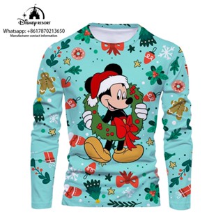 DISNEY Áo Thun Tay Dài Cổ Tròn In Hình Stitch Và Mickey Giáng Sinh Thời Trang Mùa Thu 2022 Y2K Cho Nam