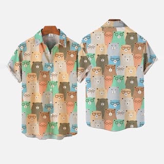 Áo Sơ Mi Tay Ngắn In Họa Tiết Chú Gấu Đeo Kính 3D Thời Trang Cho Nam 2023
