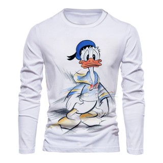 DISNEY Áo Thun Tay Dài Cổ Tròn In Hình Vịt Donald Phong Cách Đường Phố Cho Nam