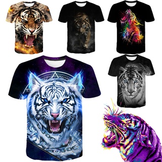Áo Thun Tay Ngắn Màu Đen In Hình Hổ 3D Cá Tính Thời Trang Mùa Hè Cho Nam Và Nữ