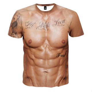 Áo Thun Nam Ngắn Tay In Hình Cơ Bắp Xăm 3D Sáng Tạo