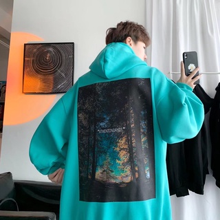 【Size M-8XL】Men's Casual Hoodie Small moon Print Pattern Coat Fashion Plus Size Men Clothing Thicken Loose Cotton Couple Wear Tops Sportswear