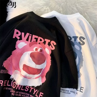 Áo Thun Tay Ngắn Dáng Rộng Mềm Mại Thoải Mái In Hình Gấu Và Dâu Tây Cho Nam