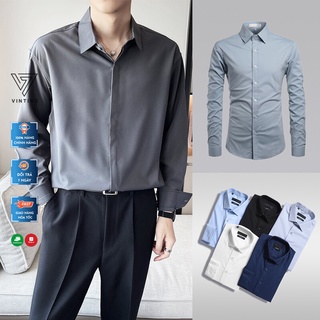 Áo sơ mi trắng nam Hàn Quốc dài tay trơn công sở vải lụa chống nhăn, Sơ mi form rộng slimfit nhiều màu VINTINO SMR
