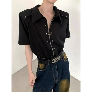 Infinite Akiyama wind / niche Áo Sơ Mi Tay Ngắn Dáng Rộng Có Khóa Kéo Kim Loại Thời Trang Cao Cấp Cho Nam ins