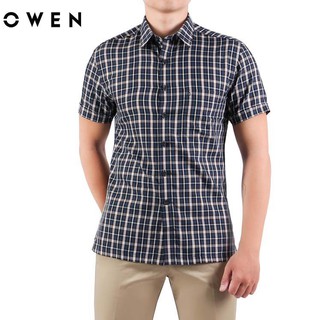OWEN - Áo sơ mi ngắn tay Body Fit xanh caro Bamboo - BA221260NT