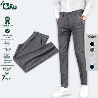 Quần tây âu nam Gấu 194 sọc caro vải coton co dãn, mềm mịn - form regular sang chảnh - Sọc Caro