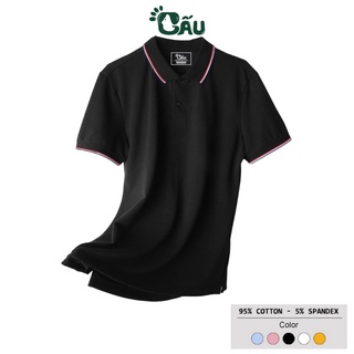 Áo thun Polo GẤU 194 Trơn Unisex vải cá sấu Poly co dãn 4 chiều dày dặn form gerular fit - PL Viền Ca Cao