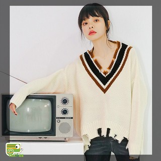 ÁO LEN THỜI TRANG NỮ CỔ TIM RÁCH GẤU PHONG CÁCH HÀN QUỐC