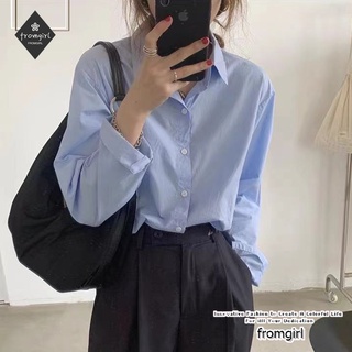 Hàng Mới Về Mới Áo Sơ Mi Nữ Tay Dài Cổ Chữ U Màu Trơn Phong Cách Hàn Quốc