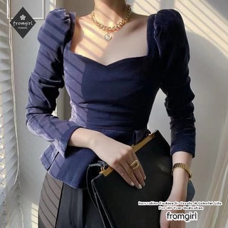 Áo nhung tay dài phồng cổ vuông thời trang mùa thu quyến rũ dành cho nữ