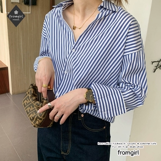 Áo Sơ Mi Nữ Tay Dài Kẻ Sọc Dáng Rộng Phong Cách Retro