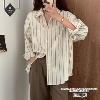 Áo sơ mi tay dài dáng rộng họa tiết kẻ sọc dọc trẻ trung hợp thời trang cho bạn gái