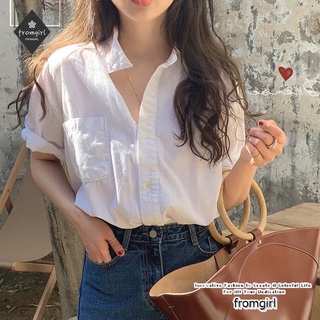 Áo Sơ Mi Trắng Tay Ngắn Dáng Rộng Thiết Kế Mới Mùa Hè Cho Nữ
