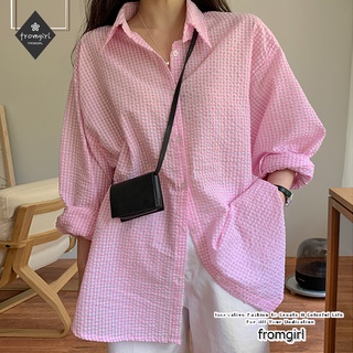 Áo Sơ Mi Caro Tay Dài Dáng Rộng Phong Cách Hàn Quốc Cho Nữ